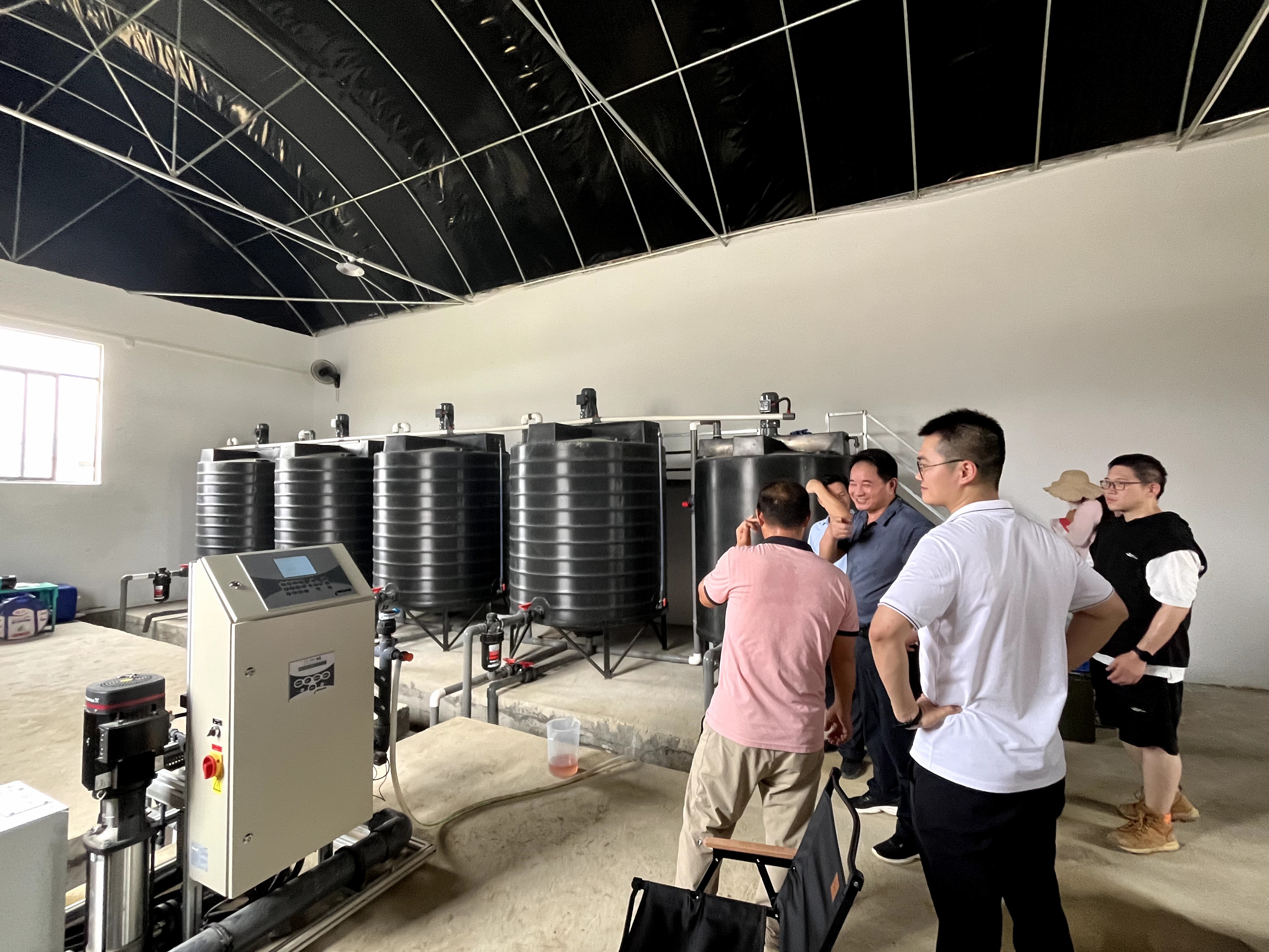 宗泽霖(右一)带肇庆市引导们参不雅全自动入口智能滴灌系统。
